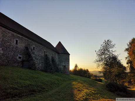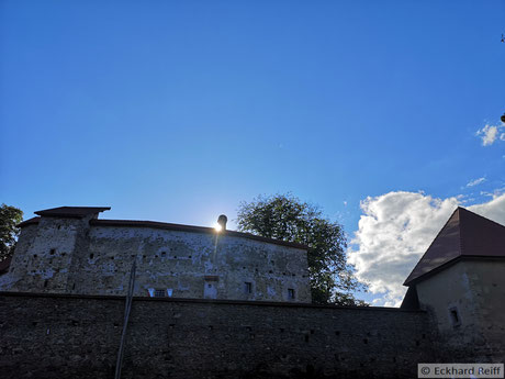 In Altenfelden, about 30 km from Helfenberg, or rather Piberstein Castle, we filled up the tanks again so we'd be ready for the group ride tomorrow. Shortly before 3:00 p.m., we reached our destination and sat down with the first familiar faces, some of whom were still unknown to me, for our first beer and some clever banter. We also considered putting up the tent—after all, it was dry at the moment—but somehow the motivation to do so was lacking. When it started to rain, that completely vanished. Retreating to the castle, or rather, advancing to the beer bar, was the logical consequence. And at some point, the question arose again: where are we going to sleep? Sam, our guide and customer of the organizer, if you can call it that, approached him and discreetly asked if he had a dry spot. And whoosh, we were in the Knights' Hall. After settling into our sleeping quarters, we headed back to the beer – and food. At some point in the evening, the glasses became smaller and the alcohol content higher in those small shots, although I successfully resisted this. Shortly after 11:00 PM, the rain stopped and the lights went out.